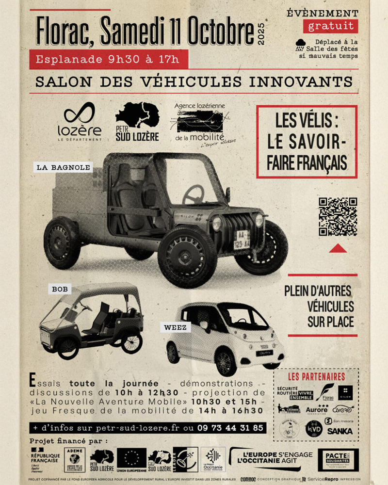 Read more: Weekend Véli en LozèreLe département de la Lozère, le PETR Sud Lozère et l’Agence lozérienne de la mobilité ont co-organisé la venue d’association et de constructeurs pour faire découvrir aux Lozériens et Lozériennes des véhicules innovants les 10, 11 et 12 octobre. Retrouvez l’association In’VD le samedi 11 et dimanche 12 octobre.10 et 12 octobre : Mende, place…
