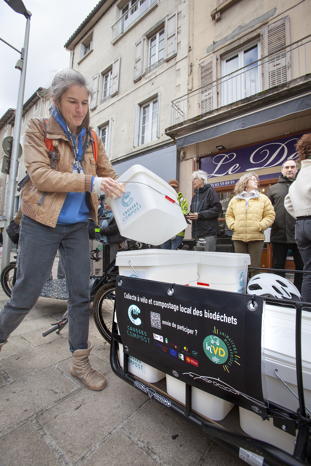 Causses Compost et In’VD remercient la Ville de Millau, la Com’ Com Millau Grands Causses, la Mécénat Caisse d’Epargne, la fondation Crédit Agricole, le Parc naturel régional des Grands Causses, l’entreprise Pourquié pour l’adapation de la remorque et l’Atelier Sprocket pour la formation et la gestion du vélo.